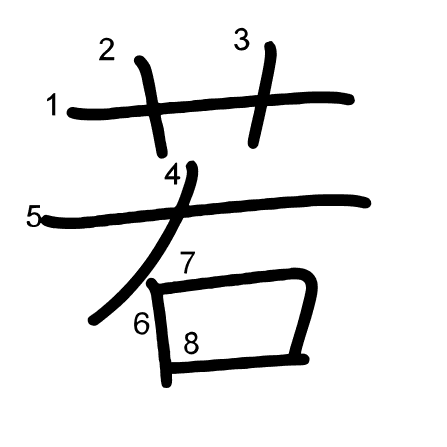Hlavní radikál: 艸 (140) Tahy: 8 obrázek | animace | tabulka