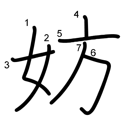 Hlavní radikál: 女 (38) Tahy: 7 obrázek | animace | tabulka