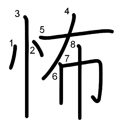Hlavní radikál: 心 (61) Tahy: 8 obrázek | animace | tabulka