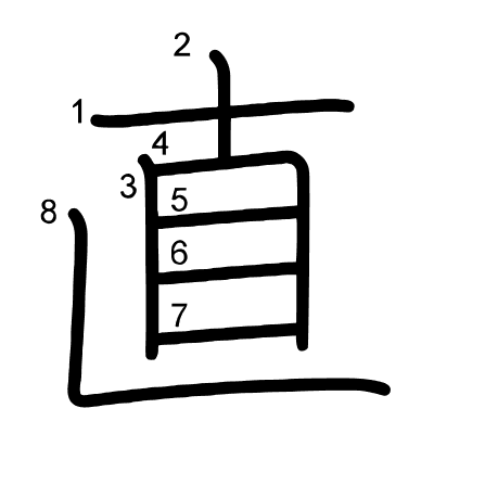 Hlavní radikál: 目 (109) Tahy: 8 obrázek | animace | tabulka