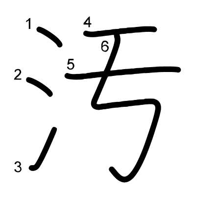 Hlavní radikál: 水 (85) Tahy: 6 obrázek | animace | tabulka