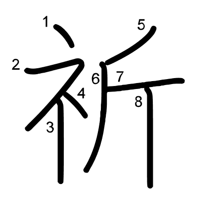 Hlavní radikál: 示 (113) Tahy: 8 obrázek | animace | tabulka
