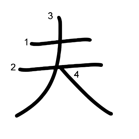 Main radical: 大 (37) Strokes: 4 picture (png) | animation (svg) | table (svg)