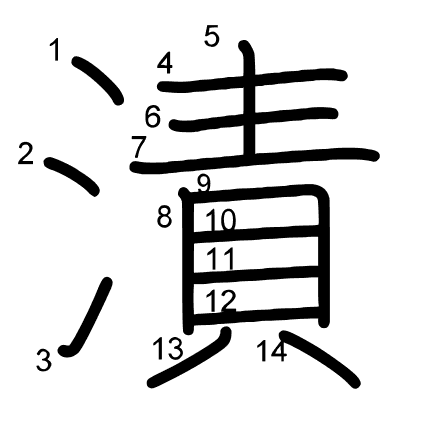 Hlavní radikál: 水 (85) Tahy: 14 obrázek | animace | tabulka