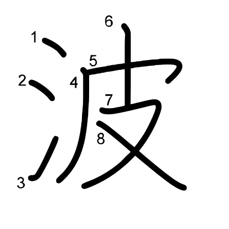 Hlavní radikál: 水 (85) Tahy: 8 obrázek | animace | tabulka