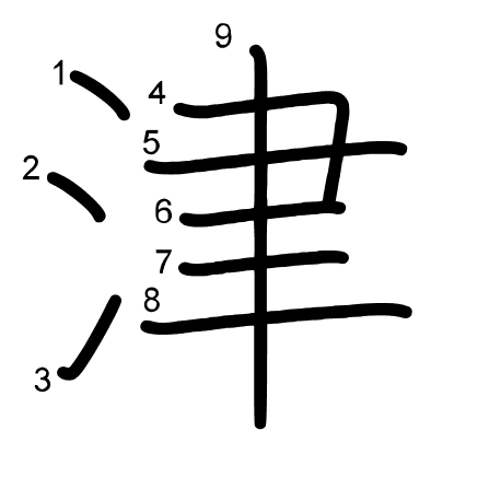 Hlavní radikál: 水 (85) Tahy: 9 obrázek | animace | tabulka