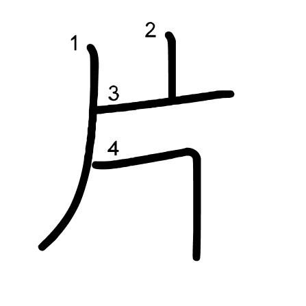 Hlavní radikál: 片 (91) Tahy: 4 obrázek | animace | tabulka