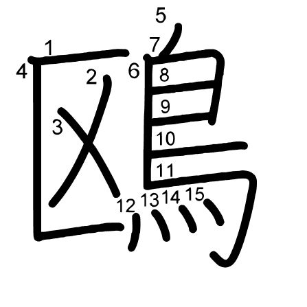 Hlavní radikál: 鳥 (196) Tahy: 15 obrázek | animace | tabulka