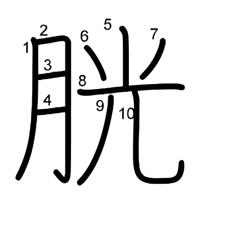 Hlavní radikál: 肉 (130) Tahy: 10 obrázek | animace | tabulka