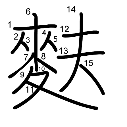 Hlavní radikál: 麦 (199) Tahy: 15 obrázek | animace | tabulka