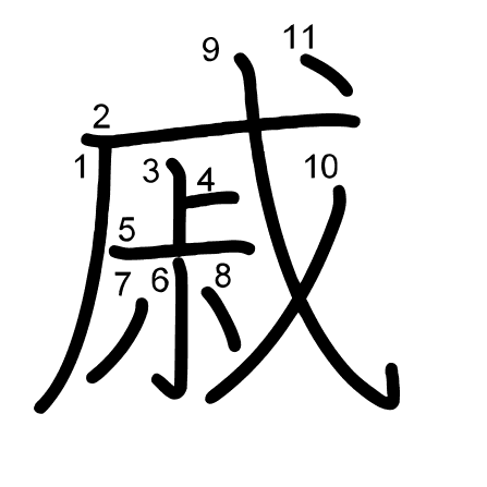 Main radical: 戈 (62) Strokes: 11 picture (png) | animation (svg) | table (svg)
