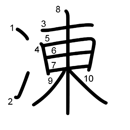 Main radical: 冫 (15) Strokes: 10 picture (png) | animation (svg) | table (svg)