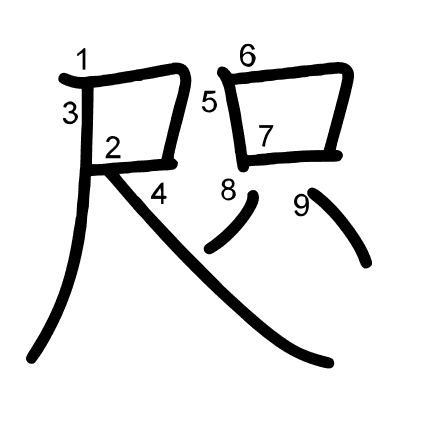 Hlavní radikál: 口 (30) Tahy: 9 obrázek | animace | tabulka