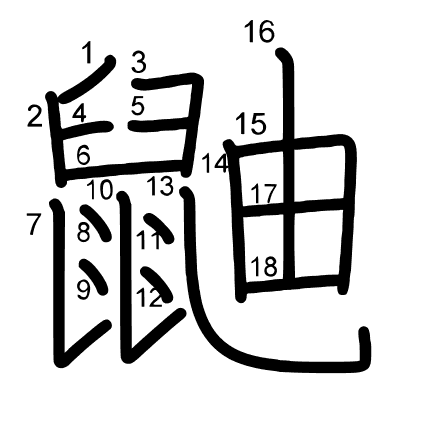 Hlavní radikál: 鼠 (208) Tahy: 18 obrázek | animace | tabulka
