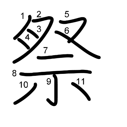Hlavní radikál: 示 (113) Tahy: 11 obrázek | animace | tabulka