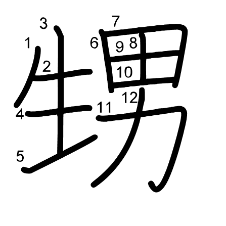 Hlavní radikál: 生 (100) Tahy: 12 obrázek | animace | tabulka