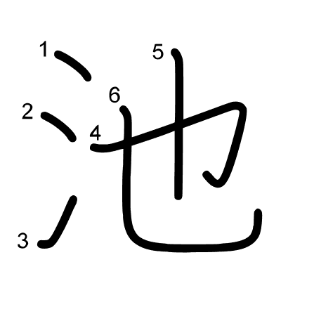 Hlavní radikál: 水 (85) Tahy: 6 obrázek | animace | tabulka