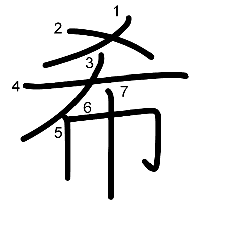 Hlavný radikál: 巾 (50) Ťahy: 7 obrázok (png) | animácie (svg) | tabuľka (svg)