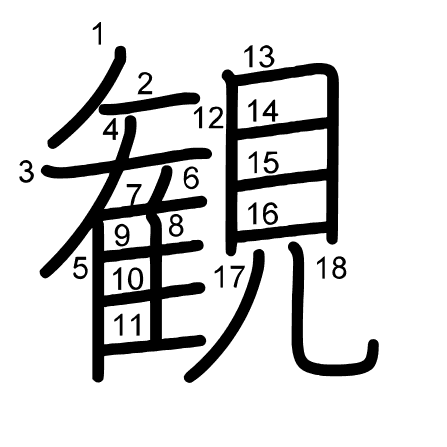 Hlavní radikál: 見 (147) Tahy: 18 obrázek | animace | tabulka