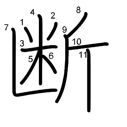 Hlavní radikál: 斤 (69) Tahy: 11 obrázek | animace | tabulka