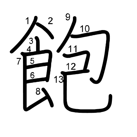 Hlavní radikál: 食 (184) Tahy: 13 obrázek | animace | tabulka