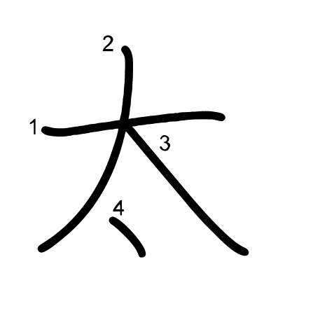 Hlavný radikál: 大 (37) Ťahy: 4 obrázok (png) | animácie (svg) | tabuľka (svg)