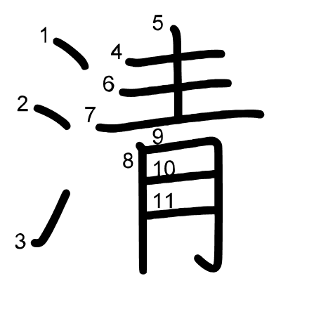 Hlavní radikál: 水 (85) Tahy: 11 obrázek | animace | tabulka
