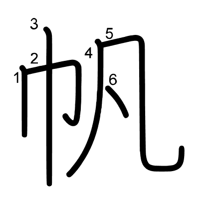 Hlavní radikál: 巾 (50) Tahy: 6 obrázek | animace | tabulka