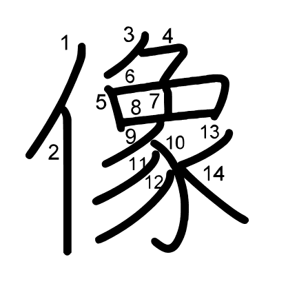 Hlavní radikál: 人 (9) Tahy: 14 obrázek | animace | tabulka