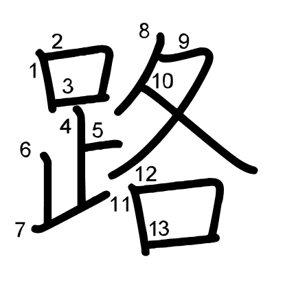 Hlavní radikál: 辵 (162) Tahy: 12 obrázek | animace | tabulka