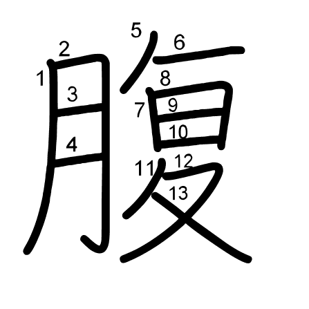 Hlavní radikál: 肉 (130) Tahy: 13 obrázek | animace | tabulka