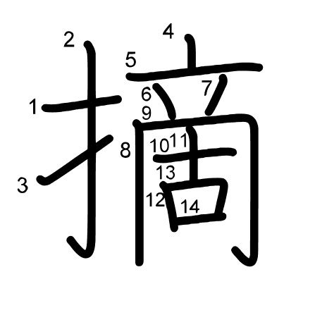 Hlavní radikál: 手 (64) Tahy: 14 obrázek | animace | tabulka