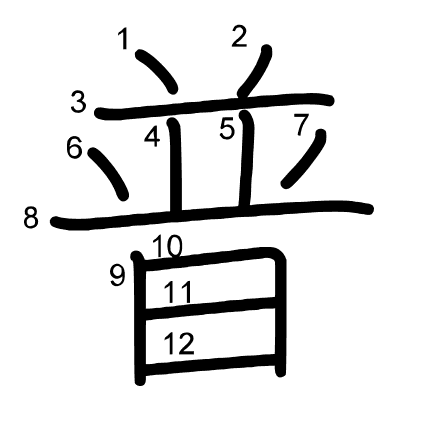 Hlavní radikál: 日 (72) Tahy: 12 obrázek | animace | tabulka