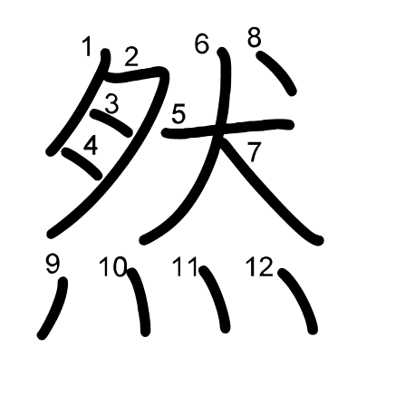 Main radical: 火 (86) Strokes: 12 picture (png) | animation (svg) | table (svg)