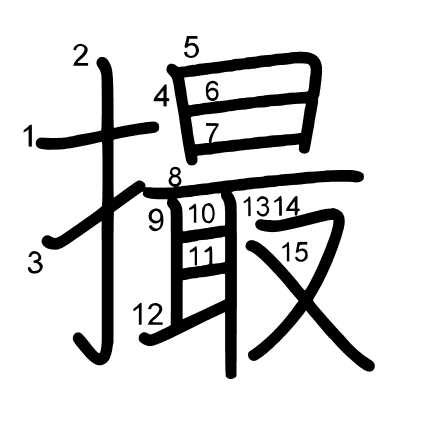 Main radical: 手 (64) Strokes: 15 picture (png) | animation (svg) | table (svg)