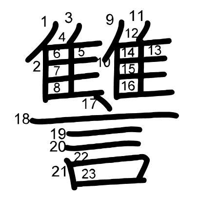 Hlavní radikál: 言 (149) Tahy: 23 obrázek | animace | tabulka