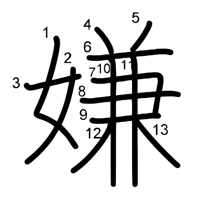 Main radical: 女 (38) Strokes: 13 picture (png) | animation (svg) | table (svg)