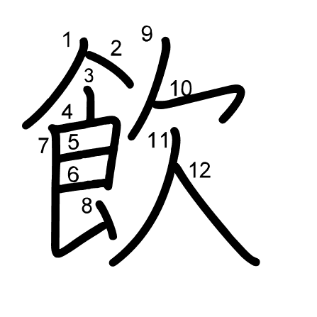 Hlavní radikál: 食 (184) Tahy: 12 obrázek | animace | tabulka