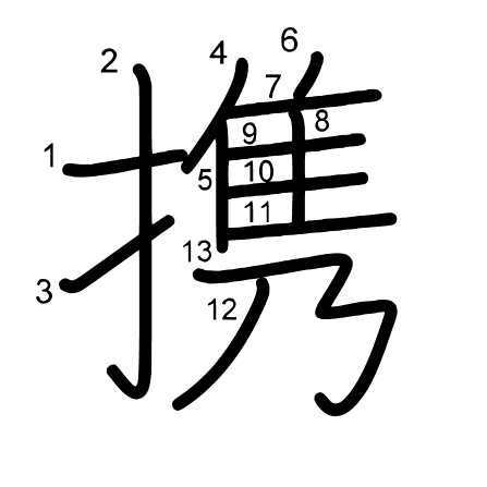Hlavní radikál: 手 (64) Tahy: 13 obrázek | animace | tabulka