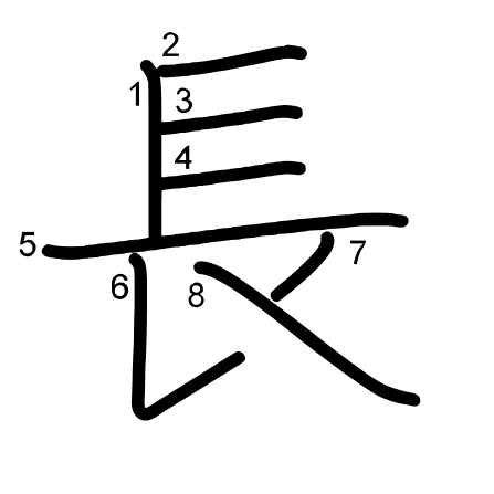 Hlavní radikál: 長 (168) Tahy: 8 obrázek | animace | tabulka