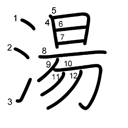 Hlavní radikál: 水 (85) Tahy: 12 obrázek | animace | tabulka