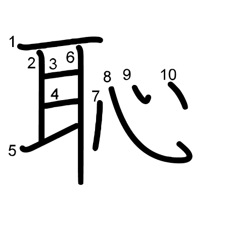 Hlavní radikál: 心 (61) Tahy: 10 obrázek | animace | tabulka