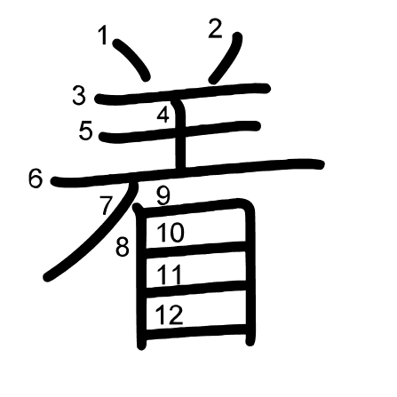 Hlavní radikál: 羊 (123) Tahy: 12 obrázek | animace | tabulka