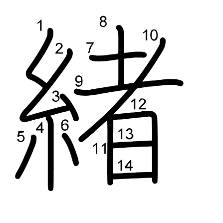 Hlavní radikál: 糸 (120) Tahy: 14 obrázek | animace | tabulka
