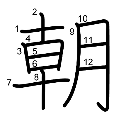 Main radical: 月 (74) Strokes: 12 picture (png) | animation (svg) | table (svg)