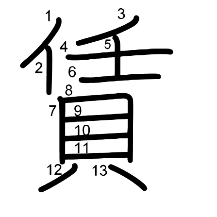 Hlavní radikál: 宀 (40) Tahy: 10 obrázek | animace | tabulka