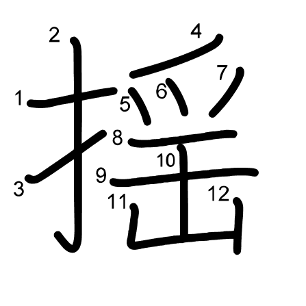 Hlavní radikál: 手 (64) Tahy: 12 obrázek | animace | tabulka