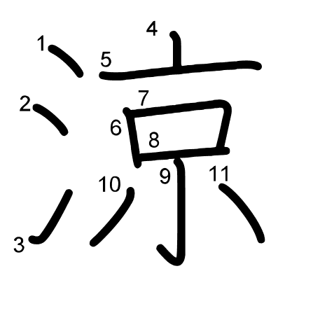 Hlavní radikál: 水 (85) Tahy: 11 obrázek | animace | tabulka