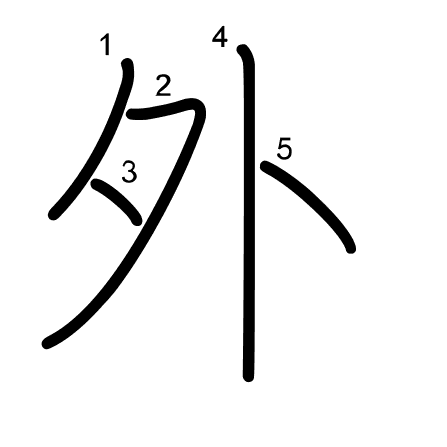 Hlavní radikál: 夕 (36) Tahy: 5 obrázek | animace | tabulka