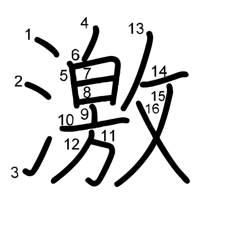 Hlavní radikál: 水 (85) Tahy: 16 obrázek | animace | tabulka